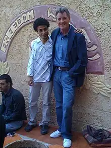 Years later, Zakaria Zubeidi, a former student of the Stone Theatre, contacted Mer Khamis' son, Juliano Mer Khamis and suggested that they set up a drama project for the new generation of young people.[7] Joined by Swedish activist Jonatan Stanczak, they opened the Freedom Theatre in 2006 as a venue to "join the Palestinian people in their struggle for liberation with poetry, music, theatre, cameras."[3]: 168 According to Juliano Mer Khamis, the goal of the theatre is to create an artistic movement dedicated to eradicating discrimination and violence.[3] He explains the theatre's mission within the Palestinian resistance movement by stating: