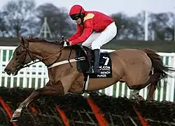 The French Furze (foaled on 10 May 1994 in Ireland) is an Irish Thoroughbred racehorse, born to sire, Be My Guest and dam, Exciting.[1] He is owned by Jim Ennis and was trained by Nicky Richards. Throughout his time as a racehorse, he was ridden by several famous jockeys, including Brian Harding, Tony Dobbin and Tony McCoy among others.[2] At the time of his retirement, The French Furze had amassed a career record of 11 wins, 12 places and 8 shows while accumulating £232,499 in lifetime earnings.[2]