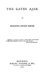 The Gates Ajar is an 1868 religious novel by Elizabeth Stuart Phelps (later Elizabeth Phelps Ward) that was immensely popular following its publication. It was the second best-selling religious novel of the 19th century.[2] 80,000 copies were sold in America by 1900; 100,000 were sold in England during the same time period.[3] Sequels Beyond the Gates (1883) and The Gates Between (1887) were also bestsellers, and the three together are referred to as the author's "Spiritualist novels."[4]