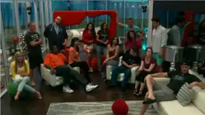 On Day 1, contestants moved into The Glass House. Holly and Robin were placed in the "enemies" room, while Erica and Andrea were placed in the "friends" room.[40] On Day 2, during the first live-feed showing, contestants played a game in which they had to guess the answer to questions that the public were answering live. The questions were multiple choice, and varied from topics such as whether it is acceptable to have sex on the first date to what is the rudest thing a person could do during a first date. Other questions involved the contestants reactions to learning their child was gay, and how long should a couple date before marrying. To answer the questions, contestants had to go to either the "friends room", "enemies room", the bathroom, or the kitchen counter, with each room symbolizing a specific answer. The contestants were later asked to tell who they felt their biggest threat was, with Andrea and Kevin receiving the most votes from their fellow contestants. They later split into teams to compete in the first competition. The competition, titled "Twist and Shout", featured the contestants solving a puzzle built onto the wall based on information about their fellow contestants.[41] The contestants split into east vs. west to do the challenge, with the east team winning. Jacob was the captain of the west team, and therefore became the first contestant to be sent to limbo. The contestants had to choose whom to send to limbo with him later on.