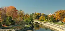 The Glebe was one of Ottawa's first suburbs.[5] In 1871 James Whyte, one of the leading merchants of the town, built a large residence on the Canal Road on the north side of the waterway at midpoint between what is now Bank Street and Bronson Avenue, which served the Basilian Fathers in the 1960s. In 1872, James Whyte moved into a new home on Bank Street near Holmwood Avenue, which served the community in the 1960s as a residence for older people. In 1882 the creation of Central Park and the construction of the new Canada Atlantic Railway terminal on the west side of the Rideau Canal at the end of the Glebe encouraged the development of the southern section of the city.[4]
