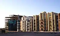 The Gramercy has 160 apartment units. A courtyard surrounds the various businesses located on the ground-floor, which includes restaurants and a fitness center. At the end of 2016, the last of the remaining office space was being prepared for incoming tenants.[30] In April 2017, the two commercial buildings were sold for $61.75 million to two real estate firms, Koll Company and Estein USA, based respectively in California and Florida.[25] The remainder of The Gramercy – including the apartment buildings and 12.6 acres of vacant property and parking lots – was sold to California-based developer Lyon Living in May 2018, for $45.75 million. The apartment units accounted for $37 million of the sale price.[31] In September 2020, Lyon Living announced plans for a six-story apartment building with 294 units, to be built on the former land of the imploded tower as well as adjacent property.[32] Construction on the apartment building, known as The Highline, began in November 2021 and is expected to conclude two years later.[33][34][35]
