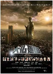 The Great Buddha Arrival (Japanese: 大仏廻国, Hepburn: Daibutsu Kaikoku) is a 2018 Japanese kaiju film directed by Hiroto Yokokawa. The film was based on the lost 1934 film of the same name, made with the cooperation of director Yoshiro Edamasa's grandson.[3] Additional footage with new actors was shot to extend the film's run time for international distribution. Still more footage was shot for a Japanese theatrical release, termed the Final Edition.[4][5] This last release occurred on September 4, 2020.