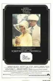 The Great Gatsby is a 1974 American romantic drama film based on the 1925 novel of the same name by F. Scott Fitzgerald. The film was directed by Jack Clayton, produced by David Merrick, and written by Francis Ford Coppola. It stars Robert Redford, Mia Farrow, Sam Waterston, Bruce Dern, and Karen Black. The plot concerns the interactions of writer Nick Carraway with enigmatic millionaire Jay Gatsby (Redford) and Gatsby's obsession to reunite with his former lover, Daisy Buchanan (Farrow), amid the riotous parties of the Jazz Age on Long Island near New York City.