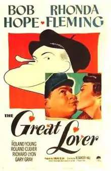 The Great Lover is a 1949 American comedy film starring Bob Hope, Rhonda Fleming, and Roland Young. In the film, a scout leader takes his troop on an ocean cruise, pursues a beautiful duchess and is stalked by a murderer. It is also known as Easy Does It and My Favourite Redhead.