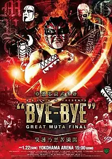 The Great Muta Final "Bye-Bye" was a professional wrestling event promoted by CyberFight's sub-brand Pro Wrestling Noah. It took place on January 22, 2023, in Yokohama, Japan, at the Yokohama Arena.[2] The event aired on CyberAgent's AbemaTV online linear television service and CyberFight's streaming service Wrestle Universe.[3]