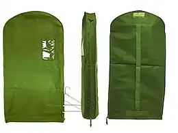 The Green Garmento is a reusable packaging product introduced by Jennie Nigrosh as an alternative to single-use dry cleaning plastic bags. It is a multipurpose, reusable garment bag which also serves as a hanging hamper, duffel bag, and dry cleaning/pick-up bag. The Green Garmento also offers additional sustainable products for laundry, storage, travel, and organization.