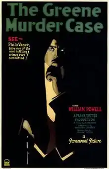 The Greene Murder Case is a 1929 talking film produced and released by Paramount Pictures and based on the novel The Greene Murder Case, by S.S. Van Dine (Willard Huntington Wright). The novel had been published a year before this film was made. It stars William Powell in his second Philo Vance outing. Florence Eldridge and Jean Arthur costar.