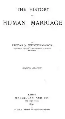 The History of Human Marriage is an 1891 book by the Finnish philosopher and anthropologist Edvard Westermarck that provides an overview of marriage over time.[1]