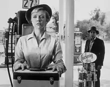 Inger Stevens and Leonard Strong in a scene from The Twilight Zone episode, "The Hitch Hiker" (1960)