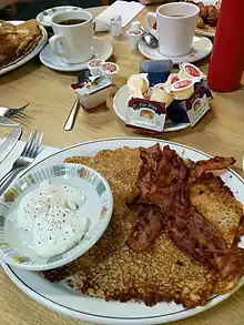 The Hoito Restaurant is best known for the Finnish pancakes they serve to their customers. Thin and the size of a large dinner plate, they are eaten with maple syrup, strawberry sauce or a sprinkle of sugar. Known as lettu or lätty in Finnish, depending on what part of Finland one is from, they are one of the traditional Finnish foods served at the Hoito. Other items prepared include viili (a sour yogurt), Karelian pasty (karjalanpiirakka), Karelian hot pot (karjalanpaisti), salmon-potato casserole (lohiperunalaatikko), pulla (sweet cardamon bread), salted fish (suolakala), rice pudding (riisipuuro), fish soup (kalakeitto), pea soup (hernekeitto) and Vienna sausage (nakki).