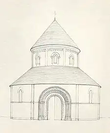 The church at Cambridge has a conical stone-slated roof. In the nineteenth century it was restored as was expected to be in keeping with the original Norman design. The Holy Sepulchre, Northampton, presently has a slightly flatter lead roof and it is likely that the roof was originally as the roof at Cambridge.