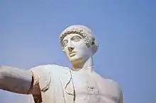 Analysing the Homeric gods, Otto does not give Zeus a separate treatment, because all divinity converges in him. Athena belongs to the immediate present and the clarity of action, where she provides level-headedness, quick-wittedness and boldness for men, and skill in handicraft for women. Apollo and Artemis signify the distance between gods and humans and thus humanity's limitations. Apollo embodies the divine in self-knowledge, measure and intelligent order, and is associated with the sun, form and masculinity. His twin sister Artemis is associated with untouched nature, development and femininity; she teaches hunters, leads the way on journeys and presides over childbirth. Aphrodite is the goddess of rapture, spring and powerful yearning, and appears in prosperous sea journeys and blooming nature. Hermes is associated with luck, the nocturnal and travel, exhibiting the Olympian traits but also a connection to the pre-Homeric order of magic.[8] Homer's gods are immortal, ageless, beautiful and tall. They reside in the aether but are present in the natural world. The presence of Poseidon, Hephaestus and Dionysus is limited in the epics, because Homer's gods are sublime entities who manifest their particular spirit in the totality of the world; they are not bound to elements, nor do they represent individual virtues or functions. They unify spirit and nature, which is reflected in Greek sculptures. Their connection to the natural world also explains their humanlike form, as humans are the highest natural forms.[9]