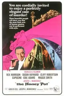 The Honey Pot, also known as The Honeypot, is a 1967 American crime comedy-drama film written and directed by Joseph L. Mankiewicz. It stars Rex Harrison, Susan Hayward, Cliff Robertson, Capucine, Edie Adams, and Maggie Smith. The film was based on the play Mr. Fox of Venice by Frederick Knott, the novel The Evil of the Day by Thomas Sterling, and loosely on the 1606 play Volpone by Ben Jonson.
