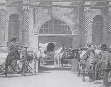 In order to shoot the film, Gaston Méliès moved his production and distribution unit, the Star Film Company from its location in New York to San Antonio in January 1910. Méliès promised to produce a historically "correct" depiction of the Battle of the Alamo. The film was directed by William F. Haddock.[4] The film was shot in San Antonio, Texas and on location at the Alamo. One hundred cadets from the Peacock Military Academy portrayed the Mexican Army.[8] Wilbert Melville "conceived the idea, designed the plot and formulated the scenario" for the film.[9] The film was produced with the permission of the mayor.[10] The film was released on May 25, 1911.[11] One estimate of the cast claimed some five hundred people were present in the picture, but this is not supported by other details of the production.[2]