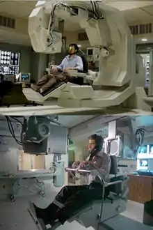 Leterrier had planned to use prosthetic makeup and animatronics to complement the computer-generated imagery that was solely used in the previous film.[80] The make-up artists who worked on X-Men: The Last Stand were set to portray Blonsky's gradual transformation,[24] which Zak Penn said would portray Blonsky "not [being] used to having these properties. Like he's much heavier, and we talked about how when he walks down the sidewalk, his weight destroys the sidewalk and he's tripping. [It's all about] the humanization of these kinds of superhero characters, showing the effects physics may actually have on [them]."[81] Tom Woodruff, Jr. of Amalgamated Dynamics (who created all the costumes for the Alien films since Alien 3) was in negotiations, and created two busts of the Hulk and prosthetic hands to act as stand-ins for the character. A full animatronic was never created as it was decided it would complicate production to set up shots for a puppet and then a computer graphic.[82] An animatronic was used for Sterns' mutating head, however.[65] Destruction was mostly done practically. A model of a bottling machine was smashed through a wall for when the Hulk escapes the factory. The filmmakers used steam and dry ice for the gas used to smoke out the Hulk, and they destroyed a real Humvee by dropping a weight on it when shooting the Culver University battle. Pipes blew fire for when the Hulk strikes down the computer-generated helicopter. When Banner falls from the helicopter to trigger the Hulk into fighting the Abomination, Norton was attached to a surface held by a bar which turned 90 degrees while the camera was pulled to the ceiling to simulate falling. Leterrier jokingly remarked that making Norton fall that distance would obviously render him unable to act.[28]