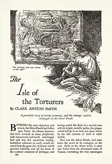 ![]() Title page of "The Isle of the Torturers" as it appeared in Weird Tales, March 1933. Illustration by Jayem Wilcox. | |