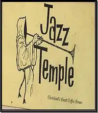 The liquor-less establishment that seated approximately 450 people was situated on a triangular lot, then known as the Mayfield Triangle, on the corner of Euclid Avenue and Mayfield Road,[1] near the ethnic enclave known as Murray Hill-Little Italy and adjacent to Western Reserve University. With surrounding institutional neighbors such as the Cleveland Museum of Art, Severance Hall (home of the Cleveland Orchestra) and University Hospitals in the city's so-called "cultural oasis", the Jazz Temple was a noteworthy, if incongruous success.[2]
