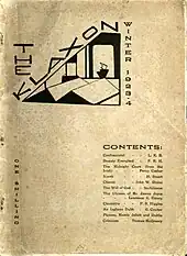 The Klaxon is noteworthy for being the first magazine to publish a critically appreciative review of Ulysses in the Irish Free State.[4] It also included an installment of Arland Ussher's English translation of Brian Merriman's The Midnight Court, the first translation of the poem to be published in the 20th century.[5] The original poetry and criticism published in The Klaxon show an engagement with European modernist movements like imagism, cubism, Dadaism, and surrealism, as well as an interest in Japanese and African art. After failing to secure funding for a second issue, Leventhal and other Klaxon contributors went on to start another avant-garde periodical called To-Morrow, which was published for two issues (August 1924 and September 1924).[6]