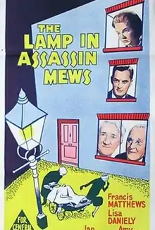 The Lamp in Assassin Mews is a 1962 British comedy crime film directed by Godfrey Grayson and starring Francis Matthews, Lisa Daniely and Ian Fleming.[1] The film's plot concerns a local council's plans to gentrify an area, which are disrupted by a series of murders.[2] It is also known by the alternative title of Durrant Affair.