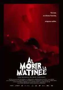 The Last Matinee (Spanish: Al morir la matinée) is a 2020 Spanish-language horror film also known as Red Screening directed by Maximiliano Contenti.[2] An international co-production of Uruguay, Mexico and Argentina,[3] the film stars Luciana Grasso, Ricardo Islas, Julieta Spinelli, and Franco Durán. It premiered in Uruguay in September 2020.[4] Set in 1993 in Montevideo, an engineering student named Ana takes over the duties of her father, a projectionist at a declining movie theatre. Unbeknownst to her, the audience watching the film at the theatre is being murdered by a black-gloved killer.[5][4]