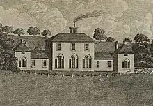 In 1789 Edward Horne sold the property to Major Francis Halliday who made considerable additions to the house and parkland. He added a stone portico at the entrance of the house and a folly hermitage in the high wood, which was decorated with "stained glass windows, furnace cinders, cowheel bones, horses' teeth, etc." (this was not in keeping with Shenstone's park improvements).[5]