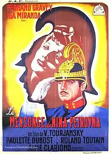 The Lie of Nina Petrovna (French: Le mensonge de Nina Petrovna) is a 1937 French drama film directed by Viktor Tourjansky and starring Isa Miranda, Fernand Gravey and Aimé Clariond.[1] It is a remake of the 1929 silent film The Wonderful Lies of Nina Petrovna with the setting moved from the Russian Empire to Imperial Vienna. The film's sets were designed by the art director Guy de Gastyne.