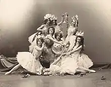 Lyubov Roslavleva (center, left) as the Tsar Maiden with dancers costumed for Alexander Gorsky's revival of The Little Humpbacked Horse for the Bolshoi Theatre. Moscow, 1901.