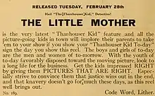 1. 1 2 3 4 Q. David Bowers (1995). "The Little Mother". Thanhouser Films: An Encyclopedia and History. Retrieved 5 August 2015.