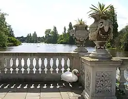 At the northern end of the Long Water are five fountains surrounded by classical statuary and sculpture in an area officially known as the Italian Gardens.[10] A large bronze memorial to Edward Jenner, the developer of modern vaccination, dominates the area; it was originally located in Trafalgar Square in 1858, but four years later was moved to its present site.[11] In recent years there has been an ongoing campaign for the memorial to be moved to the empty plinth in Trafalgar Square.[12][13]