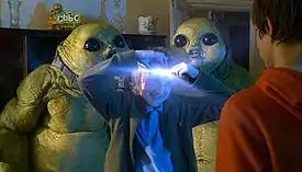 ![]() The Slitheen reveal themselves from their new slimline skin-suits | |||