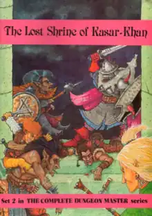 The Lost Shrine of Kasar-Khan is a role-playing scenario and gamemaster's aid written for any role-playing game system — conversion rules for Dungeons & Dragons, Advanced Dungeons & Dragons, and RuneQuest are included. The setting is an ancient dwarven shrine that is guarded by a demon. The players must overcome the demon, other creatures, and a war party that is also exploring the dungeon.[1]