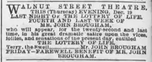 - ↑ (10 September 1868). Miscellaneous, New York Herald (rightmost column, "John Brougham receives $2,000 for his 'Novel' version of the 'Lottery of Life.")