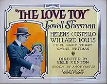 The Love Toy is a 1926 American silent comedy film directed by Erle C. Kenton and starring Lowell Sherman, Jane Winton, and Willard Louis. The film was produced and distributed by Warner Brothers.[1]