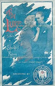 The Lure is a 1914 American silent drama film directed by Alice Guy Blaché starring James O'Neill, Fraunie Fraunholz, Kirah Markham, and Claire Whitney.[1] The Lure was an adaptation of a controversial play by George Scarborough that gives a sympathetic depiction of social pressures leading women into prostitution.[2][3]