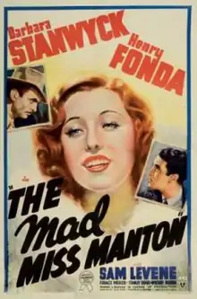 The Mad Miss Manton is a 1938 American screwball comedy-mystery film directed by Leigh Jason and starring Barbara Stanwyck as fun-loving socialite Melsa Manton and Henry Fonda as newspaper editor Peter Ames. Melsa and her debutante friends hunt for a murderer while eating bonbons, flirting with Ames, and otherwise behaving like irresponsible socialites. Ames is also after the murderer, as well as Melsa's hand in marriage.