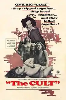 The Manson Massacre[5] is a 1972 sexploitation horror film directed by Kentucky Jones and starring MaKee K. Blaisdell and Debbie Osborne. It is based on Charles Manson and the murders perpetrated under his influence in California in 1969.[4] The film was originally released as The Cult, re-released as The Manson Massacre in 1976, again in 1980 as House of Bondage.[6][7]