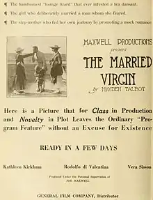 The Married Virgin (also known as Frivolous Wives) is a 1918 American silent drama film starring Vera Sisson, Kathleen Kirkham and Rudolph Valentino (credited as Rodolfo di Valentina).[1] During the early part of his career, Valentino was often cast as a villain or "heavy", his part in The Married Virgin reflects this typecasting.[2]