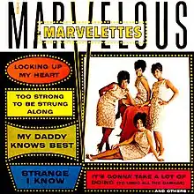 The Marvelous Marvelettes is the fourth studio album released by the Marvelettes for the Tamla label. It is the first album to not feature original Marvelette, Juanita Cowart (except on four tracks), who left the group in early 1963. The group would remain a quartet for the next two years. Also featured on the album is Rosalind Ashford of Martha and the Vandellas, who filled in for Marvelette Wanda Young in the studio while the latter was on maternity leave, while Florence Ballard of The Supremes replaced her in live performances. The album features three singles: 'Strange I Know' (#49 US, #10 R&B), 'Locking Up My Heart' (#44 US, #25 R&B), and 'My Daddy Knows Best' (#67 US).