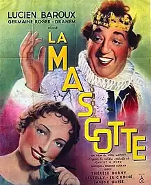 The Mascot (French: La mascotte) is a 1935 French musical comedy film directed by Léon Mathot and starring Lucien Baroux, Germaine Roger and Thérèse Dorny.[1] It is based on the 1880 Opéra comique of the same title.[2] It was shot at the Billancourt Studios in Paris. The film's sets were designed by the art director Pierre Schild, while the costumes were created by Georges Annenkov.