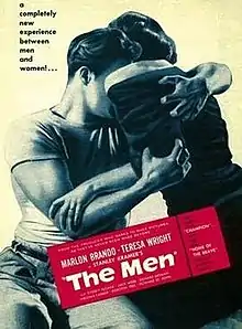 The Men is a 1950 American drama film. Set mostly in a paraplegic ward of a VA hospital, the film stars Marlon Brando (in his film debut) as an ex-GI named Ken who as a result of a war wound is paralyzed and uses a wheelchair. Suffering depression and impaired self-concept, Ken struggles to accept his disability and his need to accept care from others, including from his fiancée/wife.