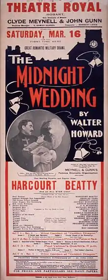 The Midnight Wedding is a 1912 Australian silent film directed by Raymond Longford based on a popular Ruritanian stage play in which Longford had appeared.[3][4] It is considered a lost film.