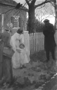 By the next day, even the local children are talking of the strange change that seems to have come over their minister. Yet, no one is able to ask Mr. Hooper directly about the veil, except for his fiancée Elizabeth. Elizabeth tries to be cheerful and have him take it off. He will not do so, even when they are alone together, nor will he tell her why he wears the veil. Eventually, she gives up and tells him goodbye, breaking off the engagement.