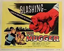The Mugger is a 1958 American film noir-crime film about a police psychiatrist who is attempting to catch a mysterious mugger that has been attacking women in his city, stealing their purses and slashing their left cheek. The film is a police procedural in structure, focusing on psychiatrist Dr. Pete Graham's investigation into the title character's identity.[1]