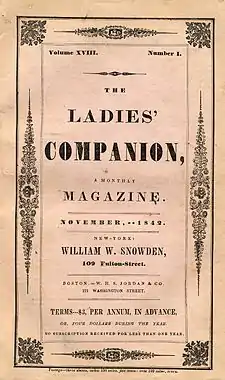 The Ladies' Companion, November, 1842, Vol. 18, No. 1, New York.