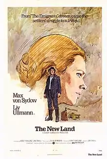 The New Land (Swedish: Nybyggarna) is a 1972 Swedish film co-written and directed by Jan Troell and starring Max von Sydow, Liv Ullmann, Eddie Axberg, Allan Edwall, Monica Zetterlund, and Pierre Lindstedt. It and its 1971 predecessor, The Emigrants (Utvandrarna), which were produced concurrently, are based on Vilhelm Moberg's The Emigrants, a series of four novels about poor Swedes who emigrate from Småland, Sweden, in the mid-19th century and make their home in Minnesota.