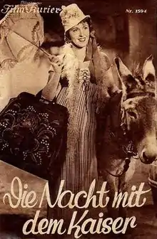 The Night With the Emperor (German: Die Nacht mit dem Kaiser) is a 1936 German historical comedy film directed by Erich Engel and starring Jenny Jugo, Richard Romanowsky, and Friedrich Benfer.[1] It was shot at the Johannisthal Studios of Tobis Film in Berlin. The film's sets were designed by the art directors Karl Haacker and Hermann Warm.[2] The film is set in 1808 at the Congress of Erfurt.