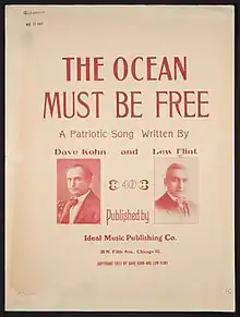 "The Ocean Must Be Free" is a World War I era song co-written by Dave Kohn & Lew Flint in 1917. The song was published with the caption "Dedicated to the United States Army and Navy to encourage enlistment," on the cover.[1] The first line of the chorus is: "Boys, put on your uniforms."[1]