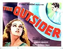 The Outsider is a 1931 British drama film directed by Harry Lachman and starring Joan Barry, Harold Huth and Norman McKinnel.[1] The screenplay concerns an unorthodox osteopath who cures one of his patients, the daughter of a fellow Doctor. It was made at Elstree Studios[2] and based on the 1923 play of the same title by Dorothy Brandon, previously made into an American silent film in 1926. The film's sets were designed by Wilfred Arnold.