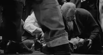 The scenes resulted in conflict with the Motion Picture Association of America, which administered the Motion Picture Production Code. The Association initially rejected the scenes showing bare breasts and a sex scene between Sanchez and Oliver, which it described as "unacceptably sex suggestive and lustful." Despite the rejection, Landau arranged for Allied Artists to release the film without the Production Code seal, and New York censors licensed The Pawnbroker without the cuts demanded by Code administrators. On a 6–3 vote, the Motion Picture Association of America granted the film an "exception" conditional on "reduction in the length of the scenes which the Production Code Administration found unapprovable." The exception to the code was granted as a "special and unique case," and was described by The New York Times at the time as "an unprecedented move that will not, however, set a precedent."[13] The requested reductions of nudity were minimal, and the outcome was viewed in the media as a victory for the film's producers.[5]